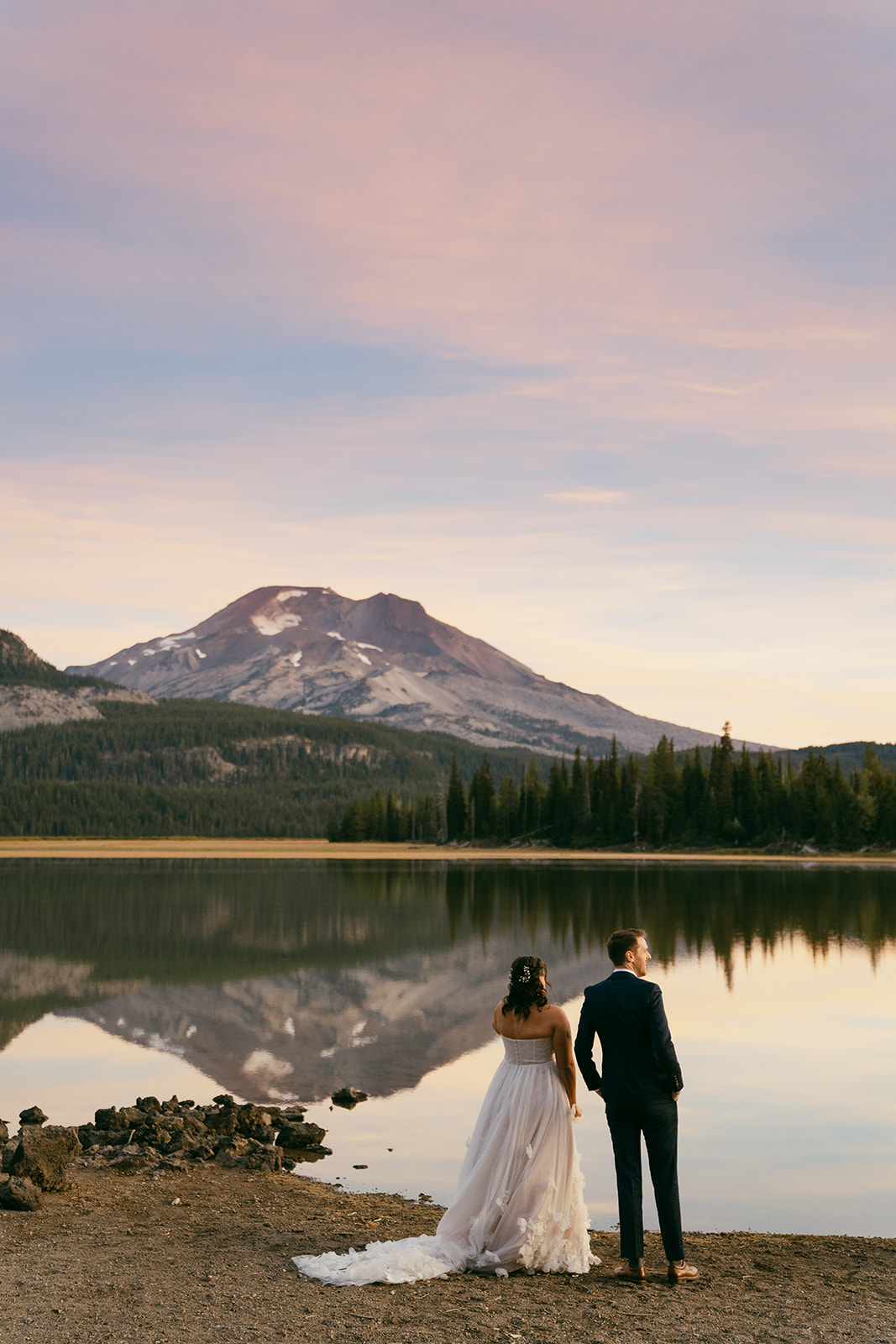 - Sparks Lake – only about 35 minutes from Bend, extremely scenic and, as such, extremely popular. One of my favorite spots for a sunrise elopement in the alpine.